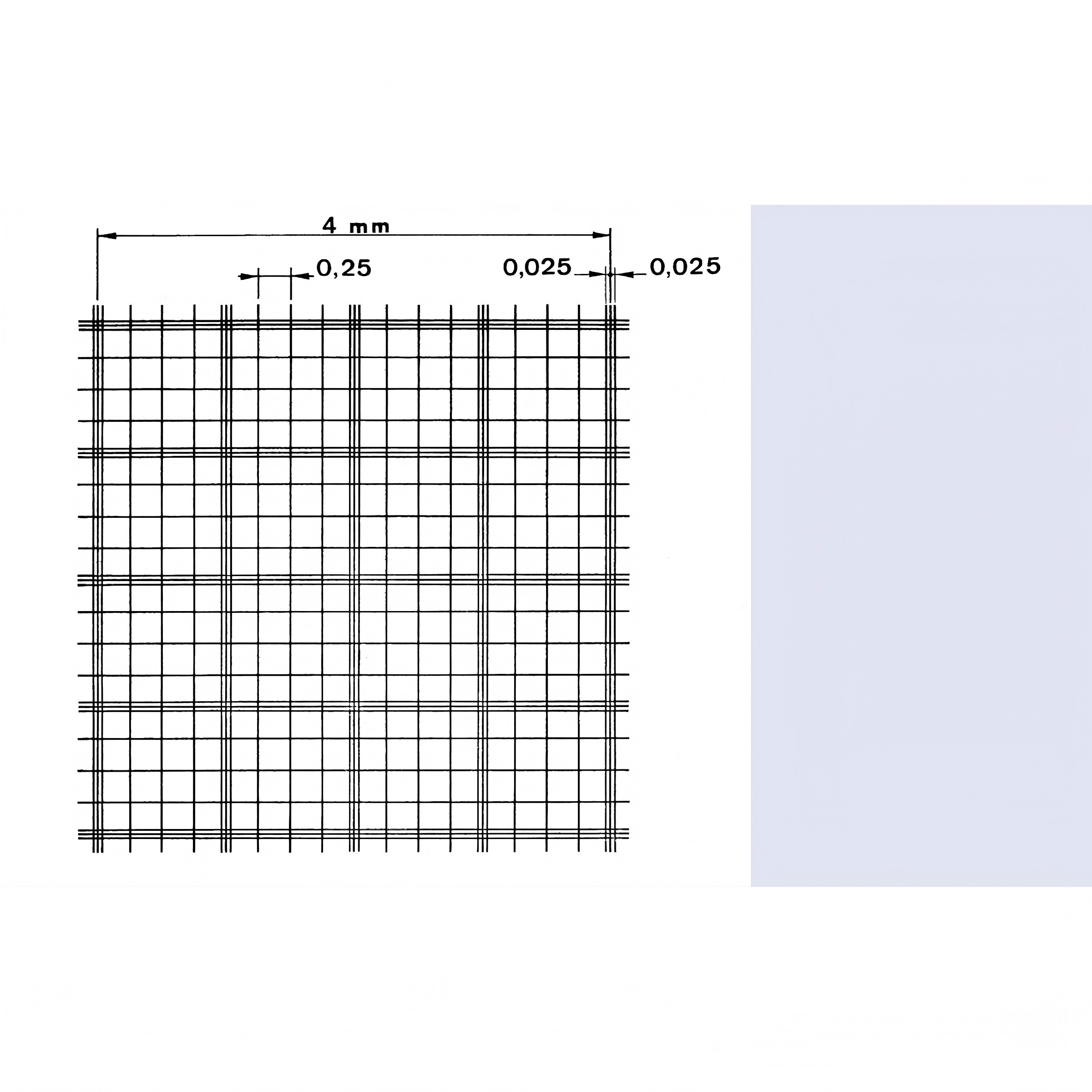 The ruling shows 16 large squares of 1 mm2. Each large square is subdivided into 16 mini squares with 0.25 mm sides and an area of 0.0625 mm2.