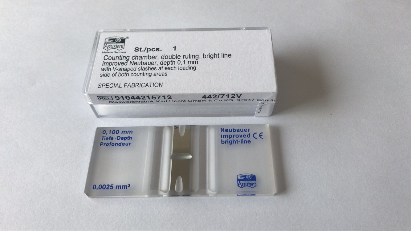 91044215712 德国原装进口Assistent血球计数板Neubauer Improved Bright-Line (亮线银底,带V型槽) ,1只/盒