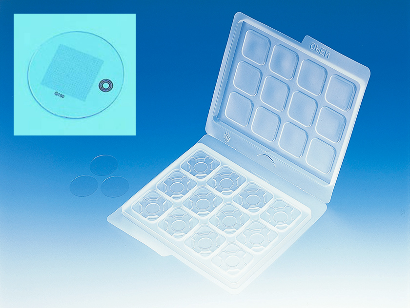 Matsunami GC1310 松浪硝子Matsunami带网格的圆形盖玻片,直径13mm,厚度1S号(0.16~0.19mm),已灭菌,48片/盒