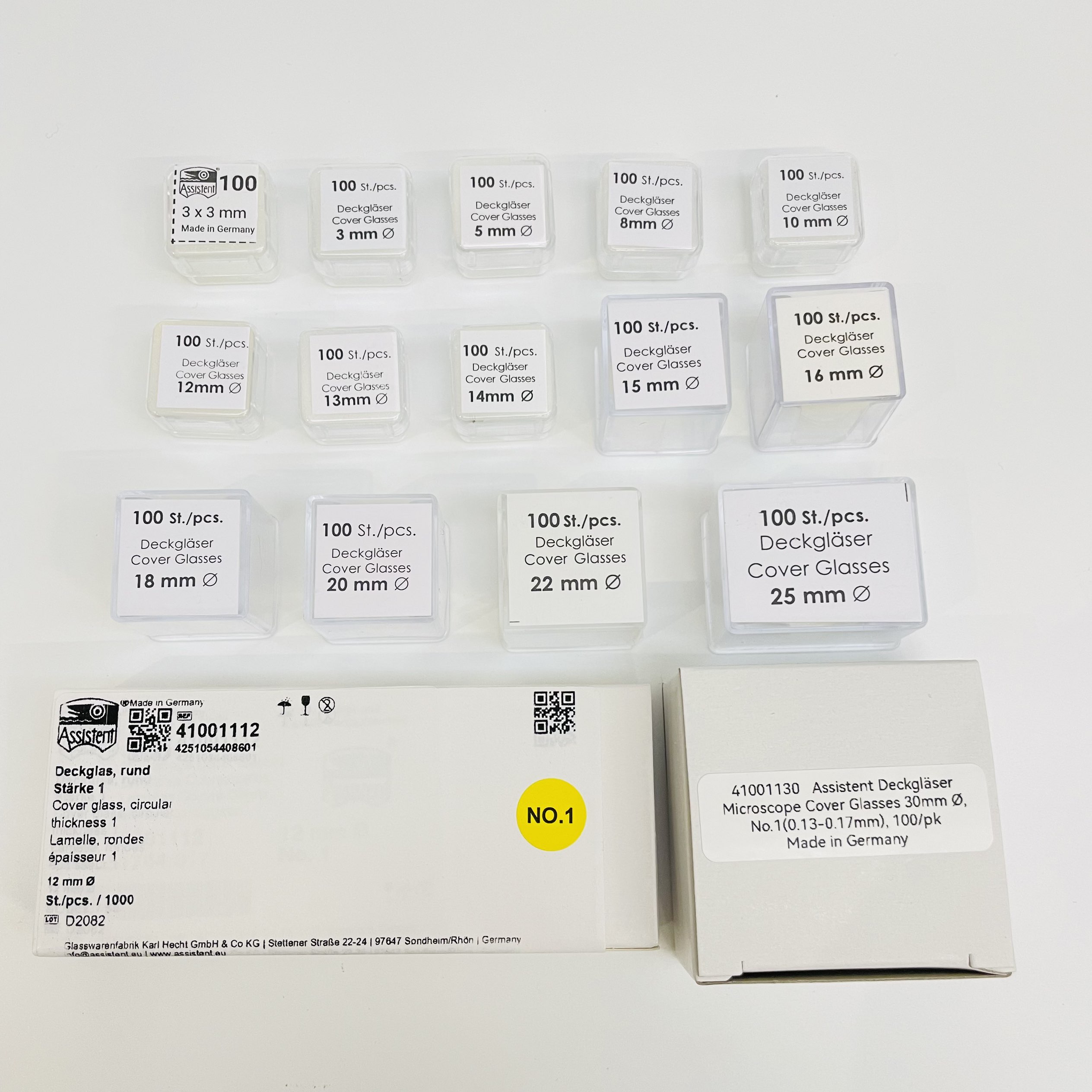 德国原装进口Assistent圆形盖玻片由高光学度硼硅酸玻璃制成,厚度尺寸均一,超净透明、耐腐蚀、预清洁、预洁净、免清洗、即用型,适用于免疫组化、免疫荧光、原位杂交等实验。