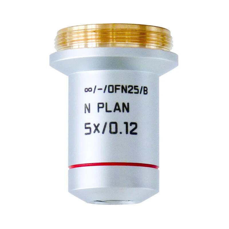 Leica 11506302 Microscope Objective N PLAN 5x/0,12 徕卡光学物镜 徕兹物镜 Objective N PLAN 5x/0,12 has a magnification of 5X and a numerical aperture of 0.12mm. For use in dry immersion material environment and attached with an objective thread of M25 having a free working distance of 14.0mm and a FN of 22.